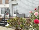 L’extérieur est composé d’une terrasse et d’un jardin sur deux niveaux. Un accès pratique à l’arrière de la maison par un portail permet le stationnement d’une moto ou petit véhicule. Stationnement aisé en voirie.